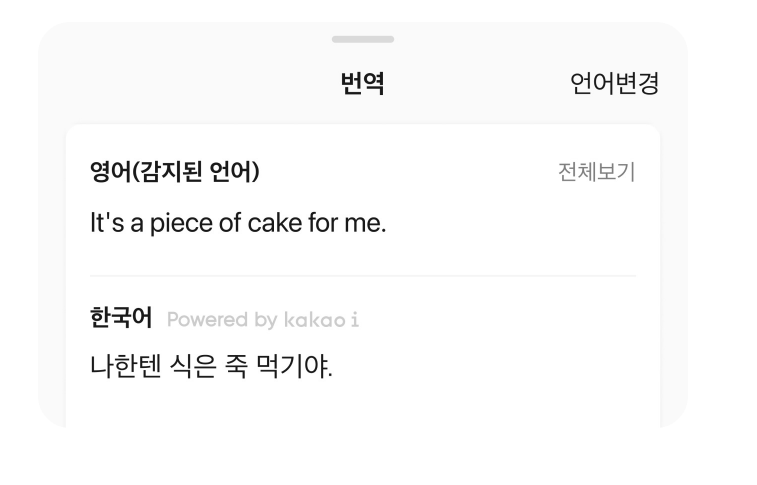 - 말풍선 번역: 카카오톡에서 사용하는 언어와 다른 언어의 말풍선을 길게 눌러 번역할 수 있습니다. 영어, 일본어를 포함해 19개 언어를 지원합니다.
