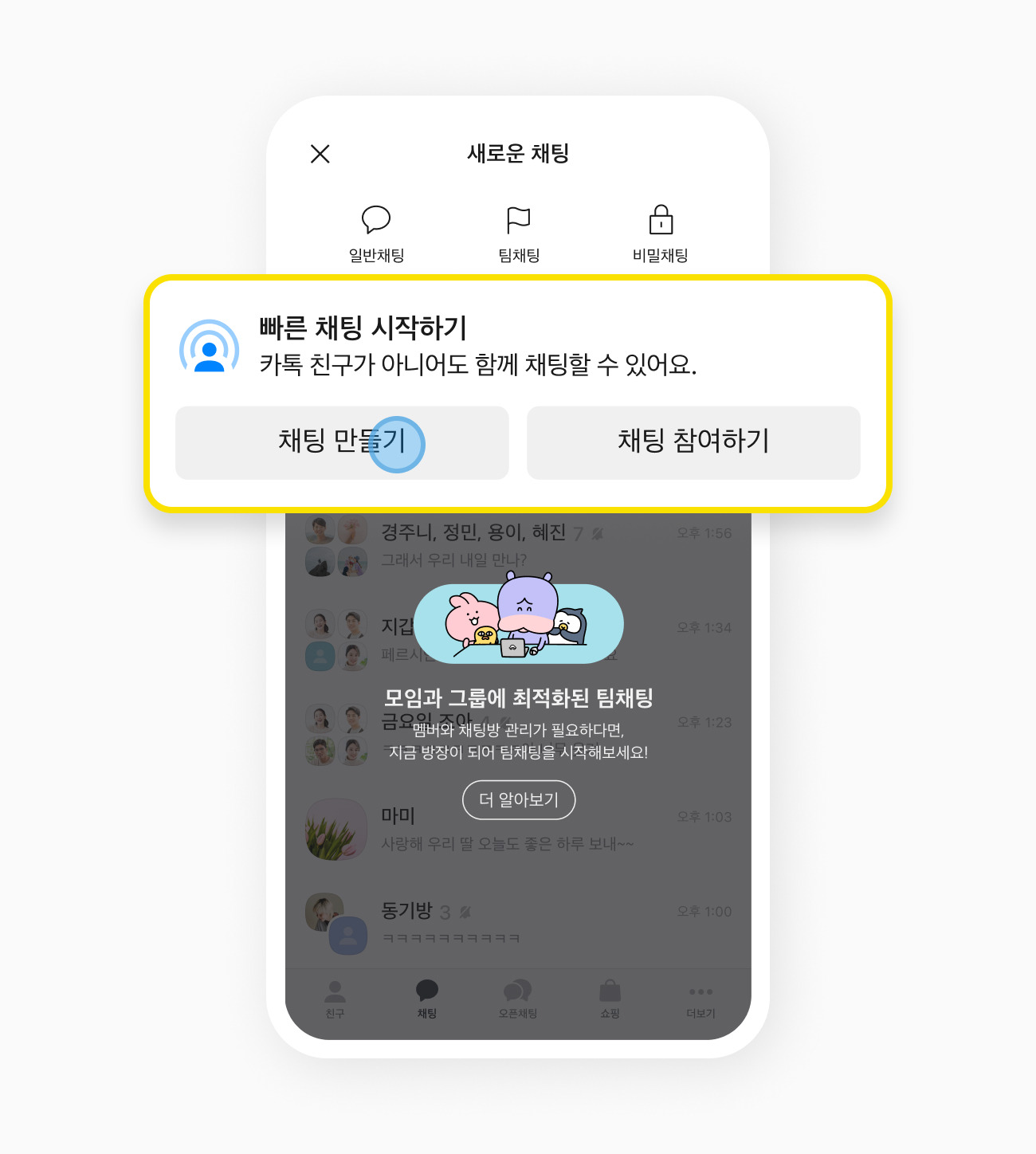 카카오톡 주변 친구 초대하기 기능을 통해, 전화번호 교환 없이도 간편하게 그룹 채팅방을 생성하고 소통을 시작해보세요!